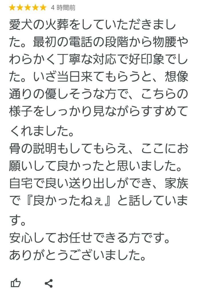 残暑が厳しいですが、少しずつ過ごしやすい時間帯も増えてきましたね。とても骨格のしっかりした子で、見晴らしのよい場所からお見送りする事ができました。今頃は虹の橋でラムちゃんと再会し、一緒にご家族様を見守られているのではと思います。