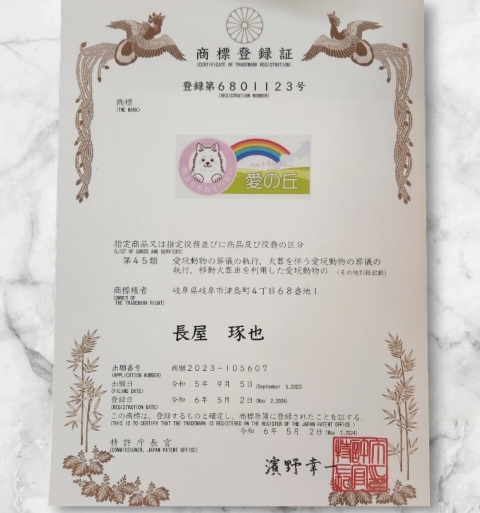 昨年の9月に商標登録を出願していたんですが、願書を提出して約8か月・・・やっと待ちに待った証書が届きました。