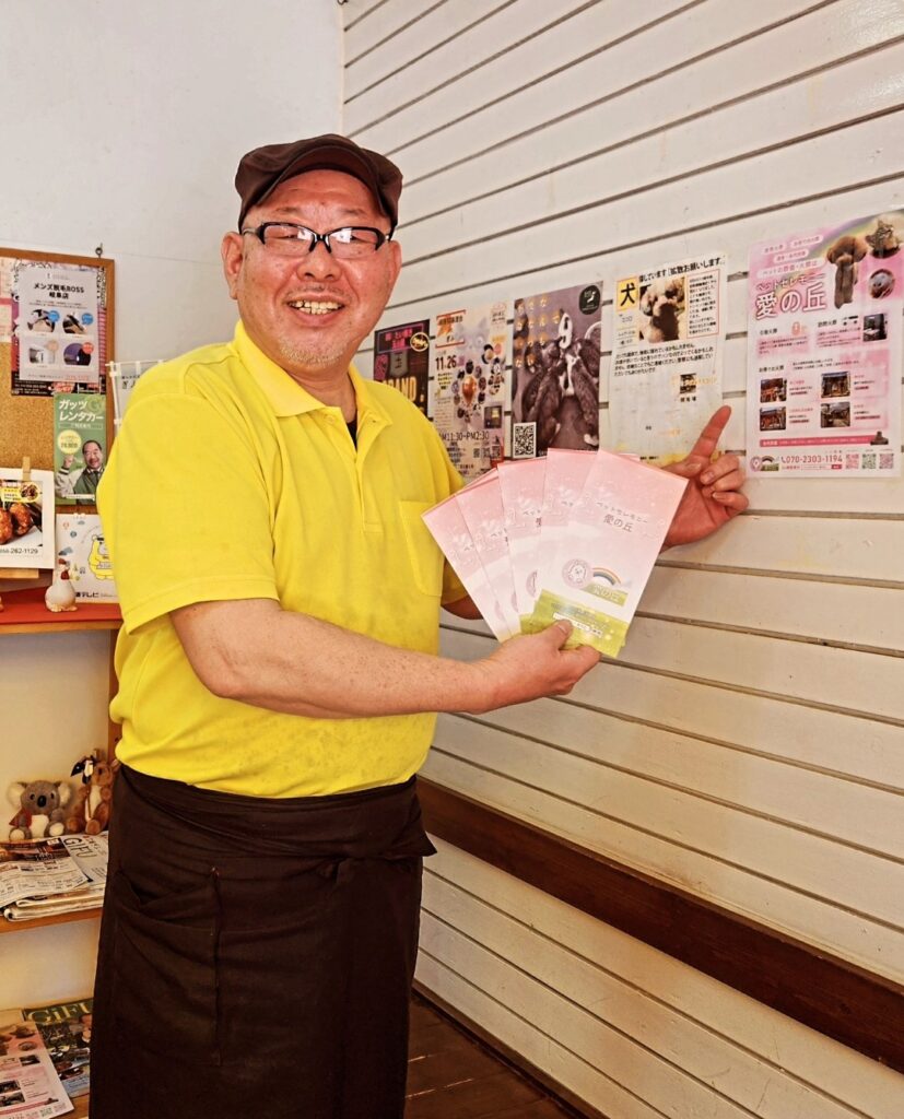 愛の丘のパンフやチラシも置いてくださり、壁にも貼ってくださいました